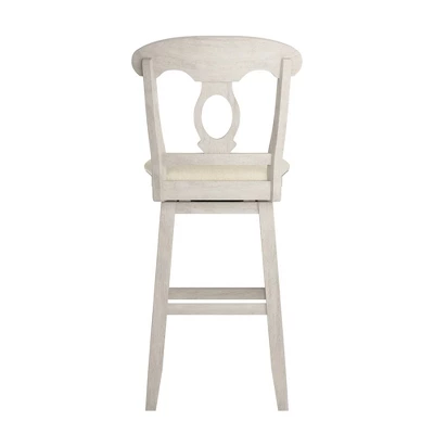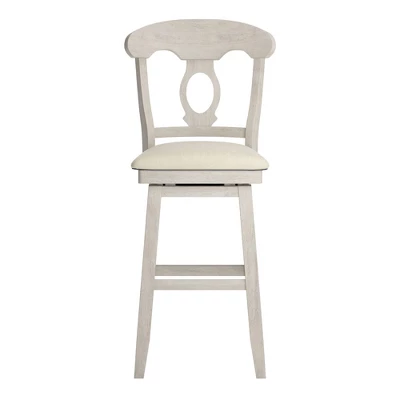 Turn your home into a cottage in the French countryside with the addition of the South Hill Napoleon Back Wood 29″H Swivel Bar Height Chair from iNSPIRE Q. Your guests will be charmed by the Napoleon-styled back of the chair as they sit comfortably on linen upholstered seats. Conversations can go on forever effortlessly thanks to the swivel feature. Founded on resilient rubber wood for stability, this rustic-inspired chair displays a beautiful distressed finish in a variety of colors to suit your unique design taste.