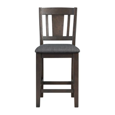The Picket House Furnishings Carter 5pc Counter Height Dining Set is dining room goals! This dining set comes with a table and four side chairs. One of the unique features of this set is the trestle base design on the dining table. The foam cushion seat on the upholstered side chairs, offers comfort even during the longest of dinners. The rustic, gray finish is perfect and can easily pair with any existing decor you might have.