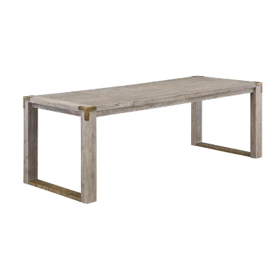 Make a dynamic statement with the Boraam 5-piece Montana Dining Room Set. The set is available with several different combinations of our dining table, bench, and dining chairs. The table and chairs are constructed with solid Acacia wood. The chairs are also upholstered with high-density foam wrapped in plush brown faux leather upholstered seat. This 5-piece set is available in our new Light Barnwood Wire-Brush finish. The light barnwood finish and Burnished metal accents will bring a warm energy to your home. The dining table has a 15.75” drop leaf extending the table to 88.5 inches, seating up-to 8 guests comfortably. This set is ready for assembly upon delivery with all tools and hardware included.