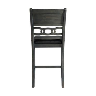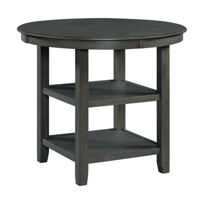 The Picket House Furnishings Taylor Counter 5PC Dining Set in Gray will look fantastic in your home! This set includes a table and four side chairs. This set is ideal for small space living allowing you to easily move around the round table top. The table also comes with a shelf in the base for placing home décor and instantly add extra flair to this already stylish set. The chair backs and seats are upholstered in a black, faux leather, that pairs beautifully with the gray finish. Another cool design feature, the chairs have a link design in the back taking this set to the next level. Add this dining set to your home today for a look you’ll enjoy day after day!