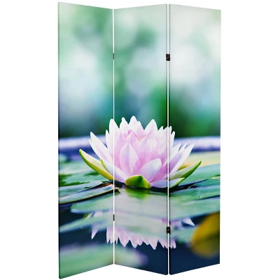 6" Double Sided Lotus Blossom Canvas Room Divider Green - Oriental Furniture