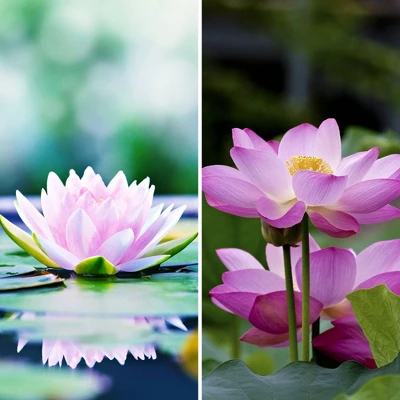 6" Double Sided Lotus Blossom Canvas Room Divider Green - Oriental Furniture - Image 2