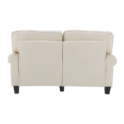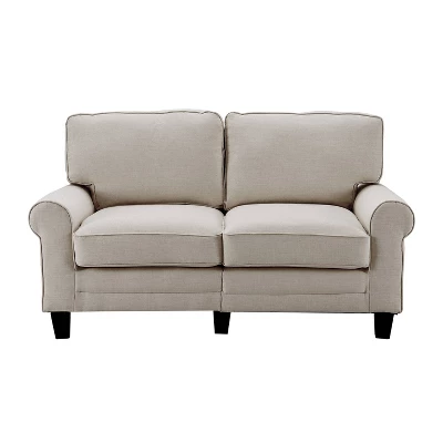 Enjoy functional style and plush, comfortable seating with the Serta Copenhagen 61″ Loveseat. A great solution for smaller spaces, its compact size and easy tool-free assembly makes it an affordable and stylish seating solution for your apartment, condo or office. Soft rounded arms, pillowy back cushions and espresso finished footers bring traditional style to your living room, den or game room. Quality hardwood materials deliver strength and stability you can count on, while individually wrapped coils surrounded by high-density foam and poly-fibers provide comfortable seating you can sit back into. Designed to match pieces in the Copenhagen Collection, this Serta loveseat can be combined with a sofa and accent chair for a completely coordinated look.