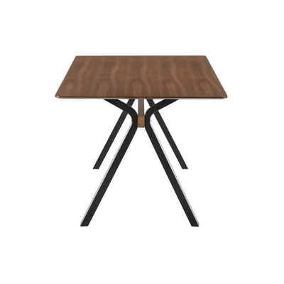 The Armen Living Laredo dining table is a perfect addition to your dining room or eat in kitchen. The Laredo table features a Walnut brown top and black legs. The base shape of this table lends itself to the mid-century modern theme but easily incorporates into any home. Seat up to 6 of your closest friends or family members at the Armen Living Laredo dining table.