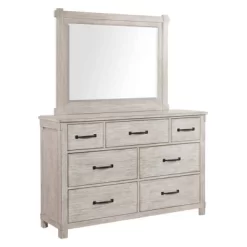 The Picket House Furnishings Trent 7-Drawer Dresser with Mirror Set is the perfect addition to your bedroom! This horizonal dresser comes with seven, spacious drawers; more than enough storage space to store away your belongings. The top drawers are felt lined, protecting your more delicate belongings. The bottom drawers are cedar lined and feature a dust proofing layer to help protect your clothes. Raised drawer fronts add an extra element of design to this already stunning set. The dark metal finish hardware pairs perfectly with the antique black finish, making this transitional group a staple in your home for years to come.