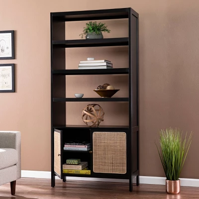 Put your favorite items on display with the Aiden Lane Groveholme Bookcase/Storage Shelf. Sliding doors keep odds and ends out of sight, while four open shelves organize everything from books to collectibles to potted plants. Slide this multifunctional bookcase into your home office to store files and knickknacks, or place in your living room to hold your favorite books and movies. Your home gets a stylish upgrade when you bring home this tall storage shelf.