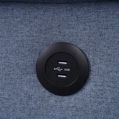 - Blue fabric upholstered cover, pillow-top arms, and plush seating, each element creating a stylish addition to your living room’s contemporary aesthetic.