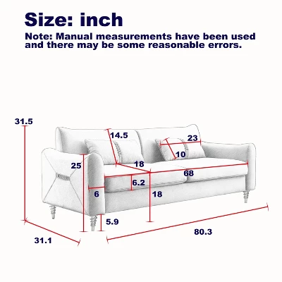 Overall Dimension: 80.3″W x 31.1″D x 31.5″H.