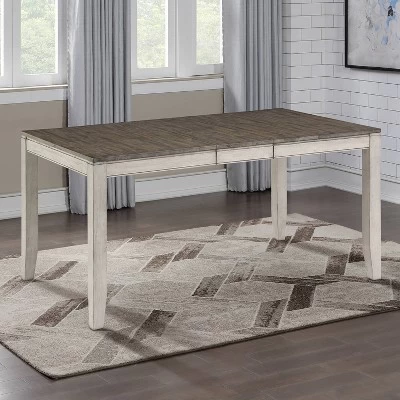 The Abacus Dining Table is built for todays lifestyle with a beautiful smoky alabaster and smoky honey finish and 12-inch self-storing Butterfly Leaf that expands the table to comfortably seat six. The casual styling fits with farmhouse, contemporary or traditional decor with a design that is clean but with touches such as tapered legs and framed apron. Also available are matching side chairs (for purchase separately). Your purchase includes one rectangular dining table with self-storing leaf.