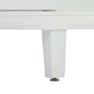 - [Manufactured for Quality] The entire cabinet frame as well as the tabletop are made of MDF. The four legs are made of fir wood. The entire desktop can bear 220 lbs. Each shelf in the cabinet can also bear the weight of 110 lbs.