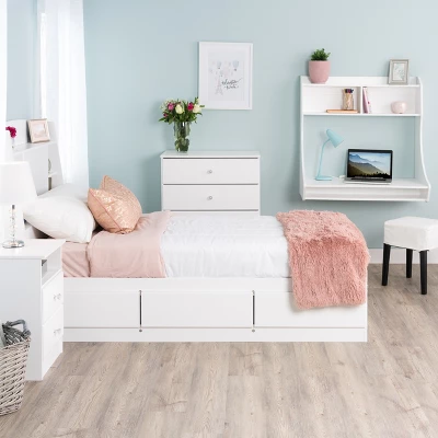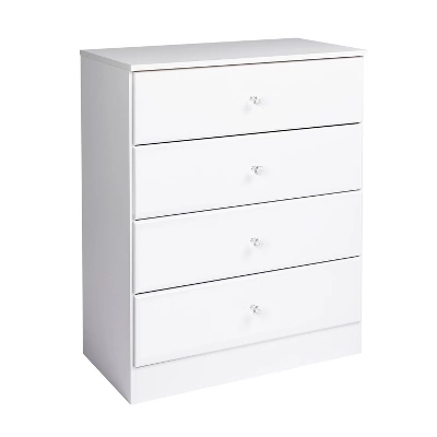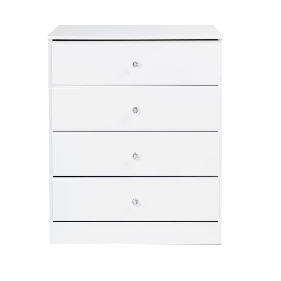 Add a classic, simple, storage solution to your bedroom with the Astrid 4-Drawer Chest with Crystal Knobs. It’s contemporary design and clean lines will complement any decor. Profiled drawer fronts and acrylic crystal knobs add a beautifying touch. Use on its own or pair it with other matching pieces from the Astrid Collection.