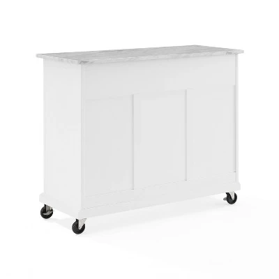 Bring elegance and function to your kitchen with the Avery Kitchen Island/Cart. Featuring a beautiful faux-marble countertop, this island is ideal for food prep or buffet-style serving. Two large drawers keep utensils and small kitchen items organized, while three cabinets with adjustable shelves are perfect for tucking away pots and pans. Both casters and feet are provided for your choice of a stationary island or a rolling cart, making the Avery Kitchen Island/Cart a wise addition to your kitchen space. Overall Product Dimensions: 42.13”W X 18”D X 36”H