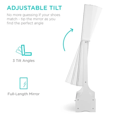 - ADJUSTABLE TILT: Innovatively built with a sturdy base that can be tilted to 3 different angles to give the best head-to-toe view for easy and convenient outfit planning while a magnetic door ensures accessories stay secure inside; OVERALL DIMENSIONS: 18.5″(L) x 15″(W) x 62.25″(H); Weight Capacity: 15 lbs.