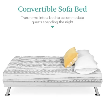 Best Choice Products Modern Faux Leather Convertible Futon Sofa W/ Removable Armrests, Metal Legs, 2 Cupholders - White -Furniture Specialty Store GUEST 15efb93a ed10 4d1c a1d5 21f062b937e2