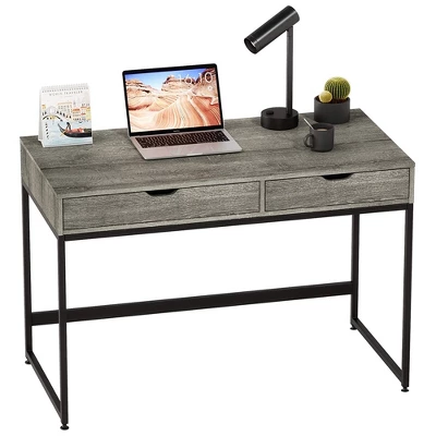 The Bestier Writing Desk with Drawers turns any room into a functional office space for students, writers, artists, or professionals of any kind.This work desk includes two large drawers that can store books, pencils, makeup, and more. A smooth drawer slide ensures operates smoothly with the mute track, giving you easy access to your storage. The spacious desktop provides ample space for your laptop, computer monitor, notebook, and other accessories. Well-illustrated instructions make assembly easy and interesting.Built with a sturdy steel frame and P2 grade particle board wood, the desktop surface supports up to 100 pounds. Adjustable leg pads protect your floor from being scratched and can increase the table’s height. An ideal desk for kids and adults alike, take care of business anywhere in your home with the Bestier Writing Desk with Drawers.