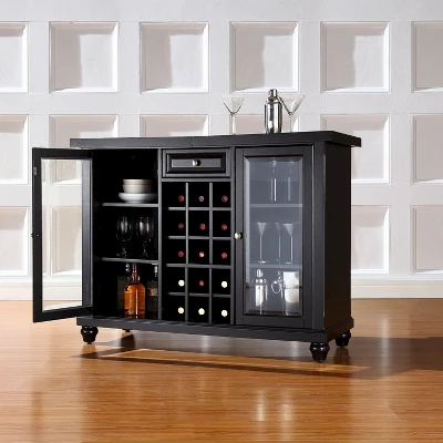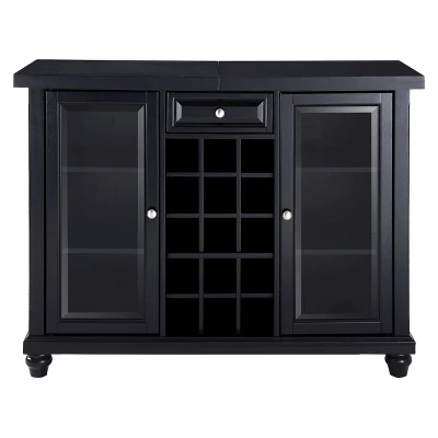 Elegantly entertain guests with the Cambridge Sliding Top Bar. Beautiful, beveled glass doors and turned feet add classic style, while the versatile sliding top provides extra serving space. Behind the glass doors, adjustable shelves offer plentiful storage space for spirits and barware. The removable center wine rack holds up to 15 bottles of wine. Make at home entertaining a breeze with the Cambridge Sliding Top Bar. OVERALL PRODUCT DIMENSIONS: 47.75”W X 19”D X 36”H