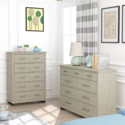 - Six drawers and open shelf
