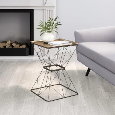 Combining urban, glam, industrial, and boho elements, the Cora side table has a painted steel frame and looks good in any space.