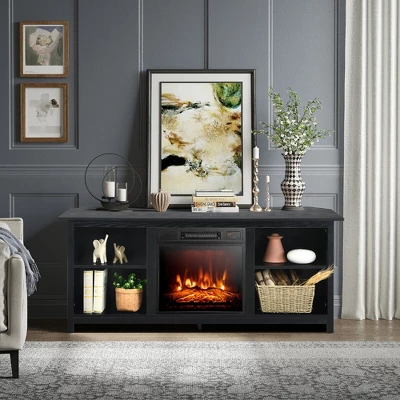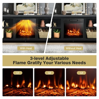 Render your living room warmer with this fireplace TV stand! With a 3-level adjustable electric fireplace insert, you can customize the flame brightness based on your preference. Through the control panel and handy remote (the maximum available distance is 26 ft), you can control the fireplace easily. In addition, the heat can be controlled individually so that you can appreciate the 3D realistic flame without heat on. The practical TV stand holds TVs up to 65” and has capacious storage space for plenty of objects, which will keep everything organized. It is not so hard for you to install the TV stand with a detailed user’s manual. And clean it with cloth for convenience.
