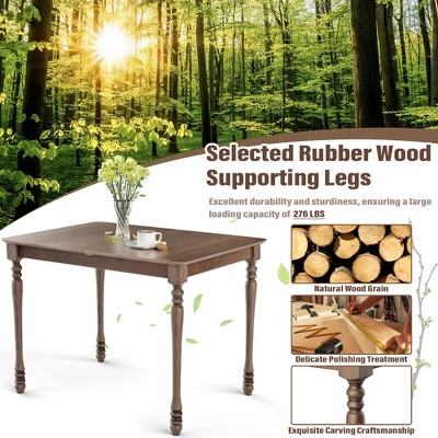 Our butterfly leaf dining table measures 41.5”-55.5”x 29.5”x 29.5”(L x W x H) and loads up to 276 lbs, providing large space for placing food, plates, and beautiful decorations. And with the classic mahogany finish, the rectangle dining table generates an excellent inclusion for all kitchen spaces and dining rooms while infusing traditional timeless charm. In addition, there exist 2 self-storing butterfly leaf to extend the table length, and you can easily store them within the table with the smooth metal mechanism. And it adopts rubber wood supporting legs, which are not only sturdy and durable enough to ensure long service but also show a unique and exquisite mid-century style. The rectangle table can be used as a dinette table in the kitchen, a coffee table in the living room, or a conference table in the office, bringing a sense of elegance to any area.