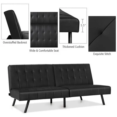 - PU Surface & Padded Seat: The sofa bed is covered by high-quality PU material, which is smooth and skin-friendly. Filled with high-density and high-elastic sponge, thick seat cushion can offer you soft and comfortable sitting experience, which can fully relieve your fatigue.