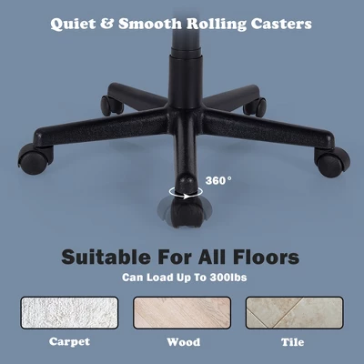 Do you have a sore back or lumbar problems after a long time sitting in the whole workday? Our ergonomic home office desk chair will help you retrieve a life of ease! This mesh office chair features a mid-back design and lumbar support, fitting your spine’s natural curve and supporting your back in a comfortable way. What’s more, the seat is padded with thick and elastic sponge and the backrest is covered with densely knitted mesh cloth. These breathable materials will softly hold your body to keep optimal comfort as they can accelerate heat effectively. The height adjustment allows you to adjust seat height from 16.5″ to 21″, making the chair suitable for your stature. In view of frequent movement while sitting, this swivel chair is equipped with smooth-rolling casters which make flexible mobility in all direction.