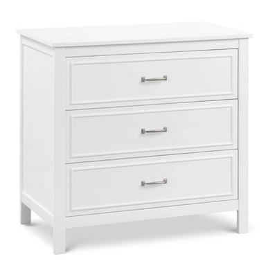 The Charlie 3-Drawer Dresser is the perfect accent piece for your nursery or any room in your home. It features three drawers with generous storage capacity and classic metal pulls. With its timeless design, this dresser will complement any bedroom furniture. Shop DaVinci Charlie 4-in-1 Convertible Crib for a coordinated nursery. Made of solid sustainable New Zealand pinewood and TSCA compliant engineered wood -only the best for your baby.