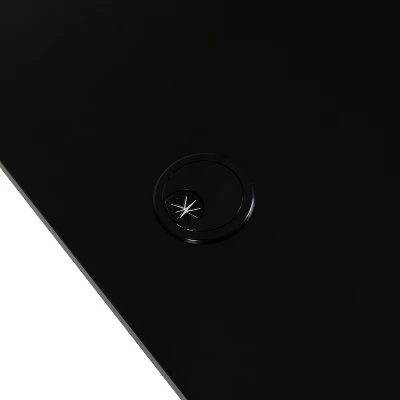 - Large Laminate Work Surface with grommet hole accommodates dual monitors, steel frame with adjustable floor glides supports up to 200 lbs. of static weight