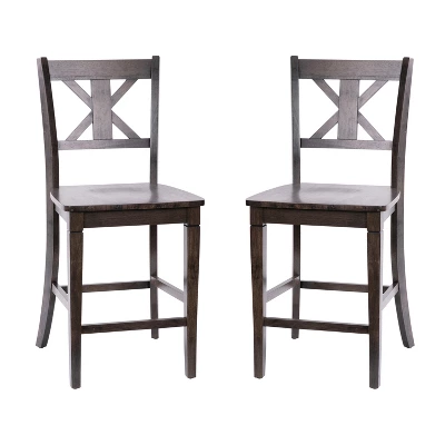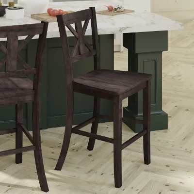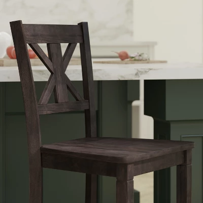 - Modern Farmhouse Dining Stool with Decorative Carved Back, Set of 2