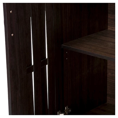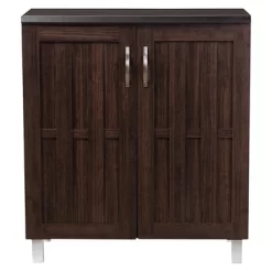 Need additional storage for your home office, entryway or living room? With its simple, versatile design in a classy, easy-to-style finish, the Excel Sideboard Storage Cabinet embraces a natural look of minimalist elegance for an effortless décor update. Revamp the furniture setting of your living space with the Excel Sideboard Storage Cabinet, a beautiful space-saving solution made of high quality engineered wood veneer dressed in practical dark brown espresso finish and accessorized with silver metal handles and PVC legs. Equipped with two large shelving spaces behind the two doors, the Excel Sideboard Storage Cabinet will help you de-clutter your home office, entryway and living room in an appealing and very stylish manner. Made in Malaysia, the cabinet requires assembly. Dimensions: 31.2″ High x 15.6″ Wide x 35.1″ Deep; Shelf/Drawer1: 30.24″ High x 14.76″ Wide x 13.8″ Deep; Shelf/Drawer2: 30.24″ High x 14.76″ Wide x 15.54″ Deep