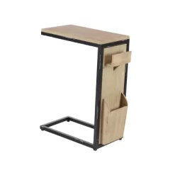 Bring a finishing touch to your home with an inviting appeal with this beautifully crafted accent table. A compact friendly table providing you with additional surface storage space any where in your home. Spacious accent table with storage slots on side panel for magazine and trinkets, the slender C-shape design allows you to tuck this table in any space. Designed with black rubber stoppers at the base that prevent sliding around as well as scratching the floor. This item ships in 1 carton. Suitable for indoor use only. Maximum weight limit is 100 lbs. Industrial theme.