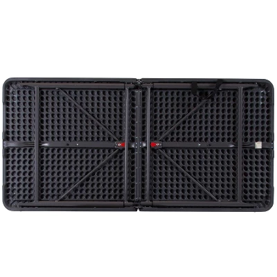 Go ahead and invite everyone to your next gathering without the worry of where they will sit. This adjustable height bi-fold plastic folding table is a great option when you need a temporary dining surface or an everyday workstation in your home or office. This versatile folding table can be dressed up or used as is with its dark colored top during holiday events, parties and arts and craft activities. Adjust the table’s height to accommodate different users. Place multiple tables side by side or in rows to accommodate large party events. The waterproof, impact and stain resistant top have a 220 pound static load capacity and is commercial rated for use as a training table, in banquet halls and at trade shows. The thick, dark gray tabletop is 4′ long, 1.25″ thick, and will seat up to 4 adults. Attractive gray powder coated legs lock securely in place while in use and non-marring floor caps protect your floor by sliding smoothly when you need to move the table. This durable, easy to clean table folds in half, making it easy to store and transport, using the convenient carrying handle attached on the side. The 23.5″W x 48.25″L Height Adjustable Bi-Fold Dark Gray Plastic Folding Table with Carrying Handle is perfect for in-home events or on the deck or patio while entertaining during a barbeque. Designed for both indoor and outdoor use, store table indoors and protect the frame from extreme moisture. Rectangular folding tables offer the best solution for your home or business. Additional Features: Folds in half for storage and travel, Includes convenient carrying handle, Frame adjusts 8″ to accommodate various seat heights, Powder Coated Locking Legs with protective floor caps, fold underneath top for flat storage, Designed for Indoor and Outdoor Use