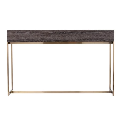 Odds and ends find their place with the Aiden Lane Frondi Long Console Table. The slim, narrow design slides neatly into your entryway or open concept space, while the contemporary, mixed-material construction brings a fresh look to your home. Display décor pieces or your book collection on the long tabletop, and tuck bills and keys into the convenient drawer. Add sleek storage where you need it most when you place this narrow sofa table in your hallway or living room.