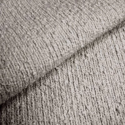 - Rubberwood frame with textured fabric upholstery in a neutral hue