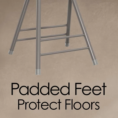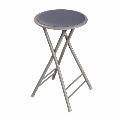 Set out extra seating at your next house party, or add a vanity stool to your bedroom with this Folding Chair Collapsible Stool from Hastings Home. Thick PVC cushioning on the ergonomic seat creates a comfortable perch for kids and adults alike. The collapsible design of this folding stool makes it easy to quickly fold flat for storage between uses. Though it weighs just 6 pounds, this durable, foldable chair has a heavy metal frame that supports up to 300 pounds, and an automatic locking mechanism on the seat’s underside ensures its legs remain secure.
