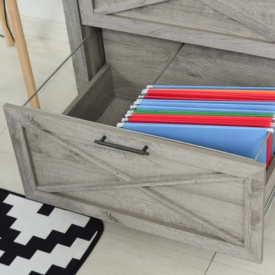- Rustic Style: This filing cabinet stands out for a rustic style. Classic oak grain veneered surface, unique x-pattern detail and elegant hardware accents giving it a neutral aesthetic that can coordinate most decorations.