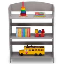 Costway Kids Book Rack Toys Organizer With 4 Sling Bookshelf & 2 Boxes EspressoBeige