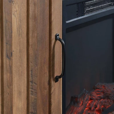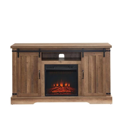 Whether it’s the dog days of summer or the dead of winter, this Sliding Barn Door Electric Fireplace TV Stand Media Console from JYED DECOR will provide endless entertainment and comfort.Made from manufactured wood, this media console has 2 durable side cabinets that conceal 2 adjustable shelves with an exposed shelf in the middle. Adequate storage space offers room to store DVDs, gaming consoles, and decor. Sliding barn doors create a farmhouse feel with an overall minimal design for a modern style that’s not too rustic.Adjustable fireplace lets you decide if you want the comfort or just the ambiance, with a realistic wood-burning flame that can operate with or without heat. The fireplace can heat up to 400 square feet, so it’s ideal for living rooms, dens, bedrooms, and basements. Pick the temperature that best suits your environment, ranging from 72 to 82 degrees Fahrenheit.Create a warm, entertaining space in any room of your home with this JYED DECOR Sliding Barn Door Electric Fireplace TV Stand Media Console.