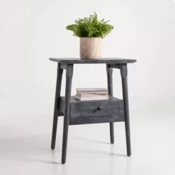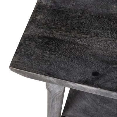 This farmhouse-inspired end table features a solid mango wood top and beveled table edge for a modern silhouette sure to please the eye. The open shelf means there is plenty of room for all your before-bed necessities. This piece works perfectly in your living room beside your couch or favorite chair, as a telephone table or plant stand, or in your bedroom as a nightstand.