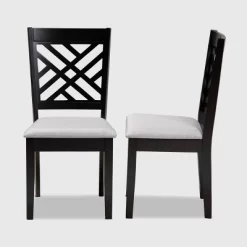 4pc Augustine Fabric Upholstered Dining Chair Set Gray/Walnut Brown – Baxton Studio