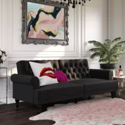 Best Choice Products Convertible Living Room Linen Fabric Tufted Split-Back Futon Sofa W/ 2 Pillows