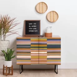 Gigi Rosado Brown Striped Pattern Walnut Credenza – Deny Designs