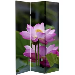 6″ Double Sided Lotus Blossom Canvas Room Divider Green – Oriental Furniture