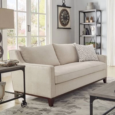 The Madge Oatmeal Tweed Fabric Sofa – Oatmeal from Inspire Q is the timeless classic you have been looking for. This modern sofa provides a warm and cozy spot for you and your loved ones to gather on with oatmeal tweed upholstery and semi-soft seats that provide the perfect amount of comfort and support. Graceful sloped arms add a sophisticated touch and the neutral hue allows for easy matching possibilities. Constructed with a solid rubber wood frame for durability, this sofa is sure to last you for years to come.