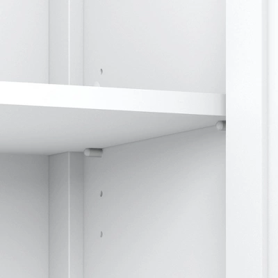 Maintain an organized work or living space with a floor cabinet that suits your casual home. Highlighted by its relaxed modern farmhouse style, the Bush Furniture Mayfield Accent Storage Cabinet with Doors is a perfect fit for virtually any residential setting. Closed storage with one adjustable shelf accommodates office supplies and household items of various sizes. Cabinet doors open and close on smooth Euro-style hinges for easy access to materials you want kept in order but out of sight. Make use of the versatile 31W x 16D x 30H design to organize your home office, living room, entryway, kitchen pantry or bathroom. Dark Bronze hardware complements a stylish Pure White and Shiplap Gray two-tone finish for an easy going appearance you’re sure to love. Upgrade your storage and display capacity with the coordinating Mayfield Tall Hutch Organizer (sold separately) to add an open shelf area for books, pictures, decorations and more. This multipurpose 2 door cabinet is tested to meet ANSI/SOHO quality standards for safety and performance and is backed by the Bush Furniture 1 Year Manufacturer’s Warranty. See the full collection for coordinating items available.