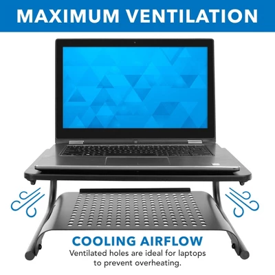 - LAPTOP AIRFLOW FOR COOLING: This laptop stand offers increased cooling and airflow for your computer with its circle cut out ventilated design. Engineered to promote the flow of heat outwards and increase your laptops performance