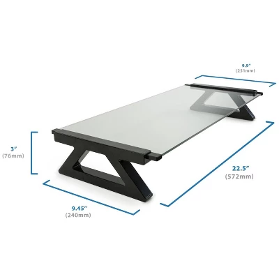 The MI-7240 is a glass vented monitor stand that will securely hold a flat-screen monitor or laptop while opening up some valuable desk space. Raise your monitor up to create a more ergonomic viewing position. The tempered glass design will look contemporary in any space, while the integrated USB 2.0 ports will keep your devices charged up and ready to go.