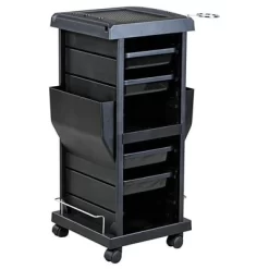 Make your day a little easier with this Professional 4-Drawer Rolling Salon Trolley Station from Chromium by PureSana.This space-saving salon rolling station comes with 4 interior drawers, side compartments, open space for large items, integrated tool holders, and stainless steel bars on both sides. Ideal for holding a variety of tools, this salon organizer has designated areas for specific products. Store your hair stylist supplies in the sliding drawers and side compartments, waxing equipment and esthetician supplies in the open dresser space, and magazines and spray bottles behind the bars. The tool holder keeps dangerous chemicals and sharp objects away from accidental injury or spillage.Quiet when in motion, the 4-wheel base allows for convenient mobility, while the locking casters ensure no unintentional movement, especially around curious kids or animals. The heat-resistant, chrome-plated blow dryer holder and durable plastic construction stand up to any salon environment. This utility organizer is ideal for hair salons, spas, barber shops, tattoo parlors, and office or home studios.Alleviate some daily stress by knowing where all your tools are with the PureSana Chromium Professional 4-Drawer Rolling Salon Trolley Station.
