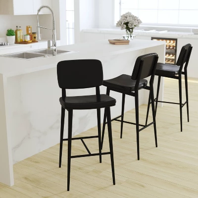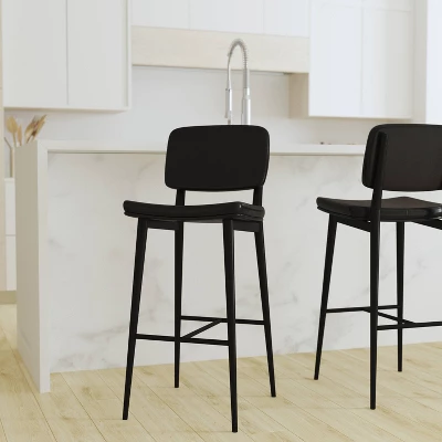 Be the first to review “Set Of 2 Faux Leather Contemporary Black Metal Frame Barstools With Integrated Footrest – Merrick Lane” Cancel reply