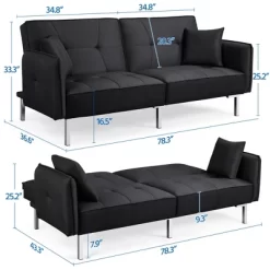 Yaheetech Fabric Futon Sofa Bed With Armrest Adjustable Backrest For Living Room